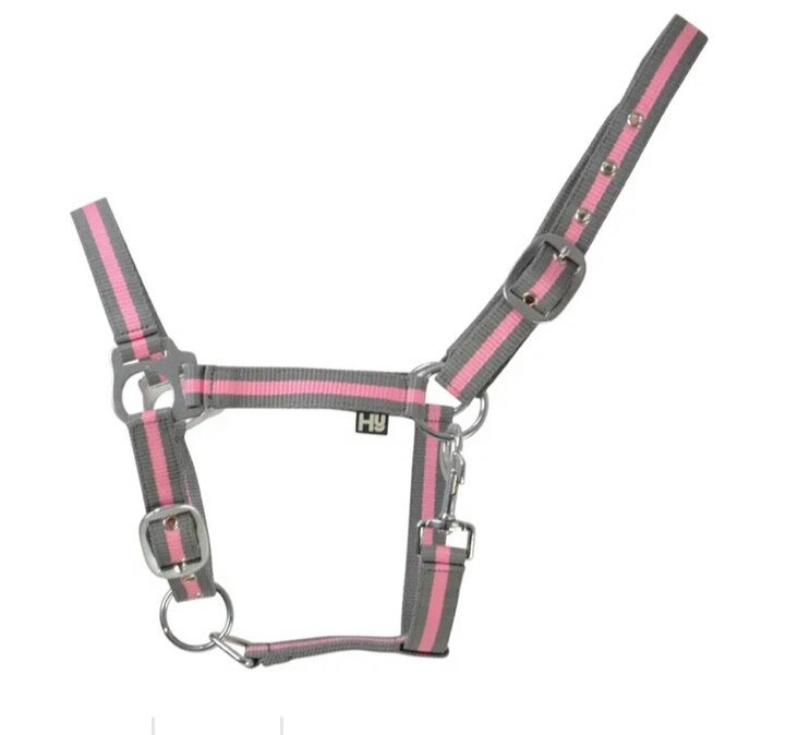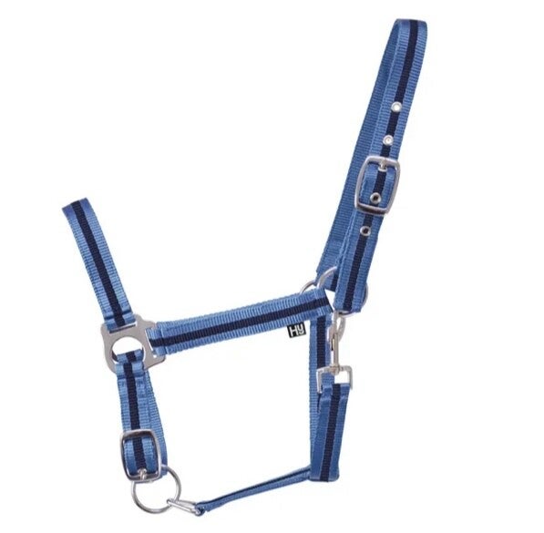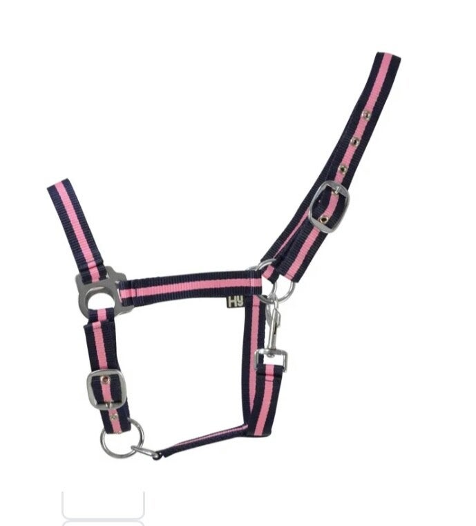 An affordable headcollar, perfect for everyday use. The Hy two-tone headcollar features stainless steel fixtures and has a fully adjustable headpiece and throat lash fastening with reinforced eyelet holes for increased durability. Made from soft webbing material in two-tone contrasting colours.